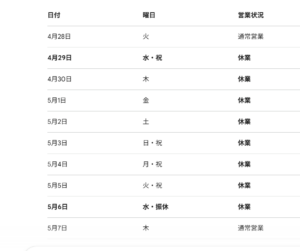 ■ゴールデンウィーク休業期間